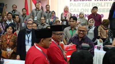 11 Oktober 201740Rabu, 11 Oktober, Partai Demokrasi Indonesia Perjuangan (PDIP) mendaftarkan diri sebagai partai politik peserta Pemilu 2019 ke Komisi Pemilihan Umum ...Perludem: Sipol Tak Bertentangan dengan UU Pemilu dan Penting untuk Validasi Verifikasi Administrasi