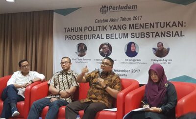 28 Desember 2017102017 sebagai tahun politik menggambarkan ada pekerjaan rumah dalam penegakan hukum pemilu. Politik uang dipraktekan gamblang dalam Pilkada 2017. Ujaran ...Calon Jalur Perseorangan Mustahil Ada di Pilkada Jawa Barat 2018