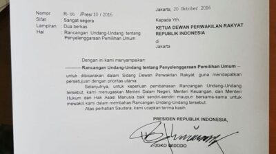 22 Oktober 201620Presiden Indonesia, Joko Widodo, menandatangani Rancangan Undang-undang (RUU) tentang Penyelenggaraan Pemilihan Umum untuk dibahas di Dewan Perwakilan Rakyat. RUU ini ...Elections Miss PKI