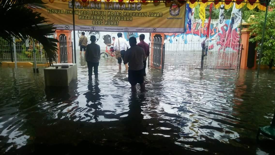 Melalui akun facebook miliknya, Kepala Sub bagian Teknis dan Hubungan Partisipasi Masyarakat (Hupmas) Komisi Pemilihan Umum (KPU) Kabupaten Pamekasan, Hendrian Haswara Bayu, mengunggah foto banjir di kantor KPU Pamekasan. Dalam statusnya, Hendri ...Tolak JR Pasal 222, MK: Agar Sistem Presidensil Tak Rasa Parlementer