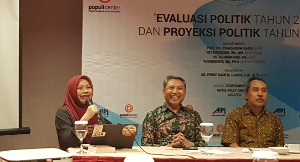 “Di dapil (daerah pemilihan) saya, Ciputat dan Pamulang, DPR ada 10 kursi. Sekarang ada 16 partai politik. Misal, satu partai ada 8 calon saja, 8 kali 16 ada 128 caleg DPR. Lalu DPRD provinsi, di dapil itu juga ada 10 kursi. Di DPRD Tangerang Selatab,12 kursi. Satu TPS ada 300 pemilih yang berdasarkan simulasi KPU, satu pemilih memakan waktu 8 hingga 9 menit. Nah ini, ditambah calon DPD, bisa dibayangkan beban KPPS seperti apa untuk menghitung suara lebih dari 400 calon pada satu hari yang sama,” jelas Titi pada diskusi “Evaluasi Politik Tahun 2018 dan Proyeksi Politik Tahun 2019” yang diadakan oleh Asosiasi Ilmu Politik Indonesia (AIPI) di Hotel Atlet Century, Senayan, Jakarta Selatan (13/12).