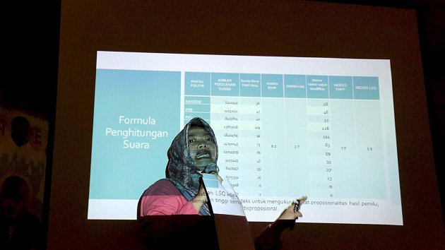 “Kalau lampiran dapil yang sekarang dipertahankan, kita akan menghadapi beberapa wilayah yang tidak sesuai dengan prinsip integralitas wilayah. Contohnya, dapil Kalimantan Selatan II, ada 1 kursi untuk Kota Banjarmasin. Nah, letak Kota Banjarmasin ini tidak integral dengan Kalimantan Selatan II,†jelas Titi.