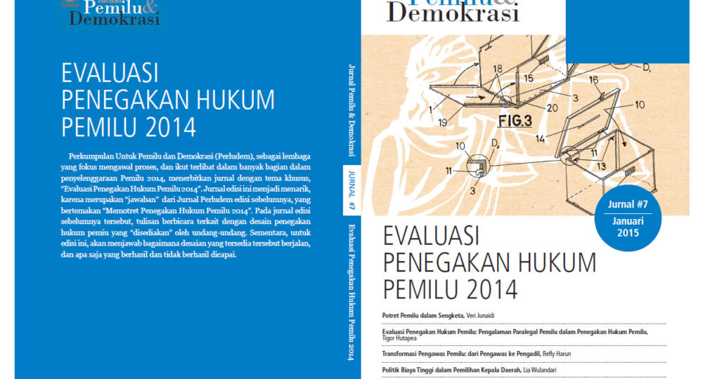 Perkumpulan Untuk Pemilu dan Demokrasi (Perludem), sebagai lembaga yang fokus mengawal proses, dan ikut terlibat dalam banyak bagian dalam penyelenggaraan Pemilu 2014, menerbitkan jurnal dengan tema khusus, “Evaluasi Penegakan Hukum Pemilu 2014”. Jurnal edisi ini menjadi menarik, karena merupakan “jawaban” dari Jurnal Perludem edisi sebelumnya, yang bertemakan “Memotret Penegakan Hukum Pemilu 2014”. Pada jurnal edisi sebelumnya tersebut, tulisan berbicara terkait dengan desain penegakan hukum pemiu yang “disediakan” oleh undang-undang. Sementara, untuk edisi ini, akan menjawab bagaimana desaian yang tersedia tersebut berjalan, dan apa saja yang berhasil dan tidak berhasil dicapai.