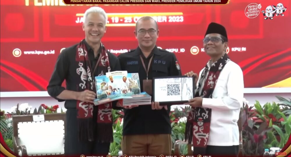 Komisi Pemilihan Umum (KPU) menerima berkas pendaftaran Ganjar Pranowo-Mahfud MD. Pasangan ini diusung sebagai calon presiden dan wakil presiden Pemilu 2024 oleh Partai Demokrasi Indonesia Perjuangan (PDIP) dan Partai Persatuan Pembangunan (PPP) yang memiliki kursi DPR serta partai politik luar DPR yaitu Partai Hati Nurani Rakyat (Hanura) dan Partai Persatuan Indonesia (Perindo).