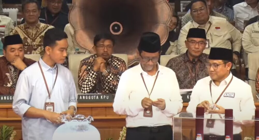 Komisi Pemilihan Umum (KPU) resmi menetapkan nomor urut pasangan calon presiden dan wakil presiden. Anies Baswedan-Muhaimin Iskandar mendapatkan nomor urut 1, Prabowo Subianto-Gibran Rakabuming Raka bernomor urut 2, dan pasangan Ganjar Pranowo-Mahfud MD mendapatkan nomor urut 3 sebagai peserta Pemilu 2024.