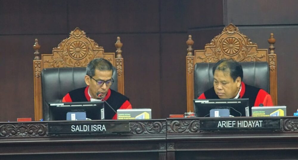 “Dalam pokok permohonan, menolak permohonan pemohon untuk seluruhnya,” kata Ketua MK Suhartoyo di Gedung MK, Jakarta Pusat (22/4).