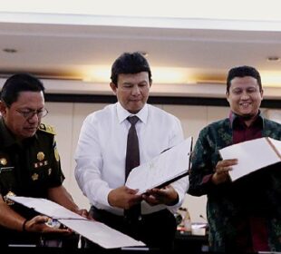 Ketua Bawaslu Muhammad, Kepala Polri yang diwakili Kepala Bareskrim Polri Komjen Ari Dono Sukmanto, dan Jaksa Agung yang diwakili Jaksa Agung Muda ...Mencari Perempuan Penyelenggara Pemilu