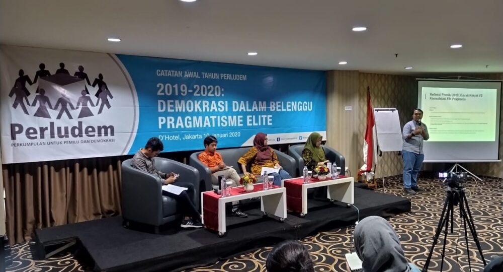 Perkumpulan untuk Pemilu dan Demokrasi (Perludem) memberikan catatan awal tahun dalam bentuk evaluasi terhadap tahun politik 2019. Dalam satu rangkuman kalimat, Perludem menilai tahun 2019 sebagai tahun dimana demokrasi yang dipercayai oleh masyarakat gagal membuahkan pemerintahan yang baik akibat kebijakan-kebijakan dan kehendak elit yang lahir dari pragmatisme politik. Faktanya, tingkat partisipasi pemilih di tempat pemungutan suara (TPS) mencapai 81 persen. Tingkat partisipasi dipandang sebagai wujud kepercayaan masyarakat terhadap demokrasi. Pandangan tersebut selaras dengan hasil survey Lembaga Ilmu Pengetahuan Indonesia (LIPI) pada 2018 yang menunjukkan tingkat kepercayaan publik kepada demokrasi kian meningkat(CNN Indonesia, 20 Juli 2018). Sayangnya, kepercayaan publik terhadap demokrasi mesti menemui patah hati sebab kebijakan-kebijakan yang dihasilkan oleh Pemerintah dan Dewan Perwakilan Rakyat (DPR) justru tak demokratis.